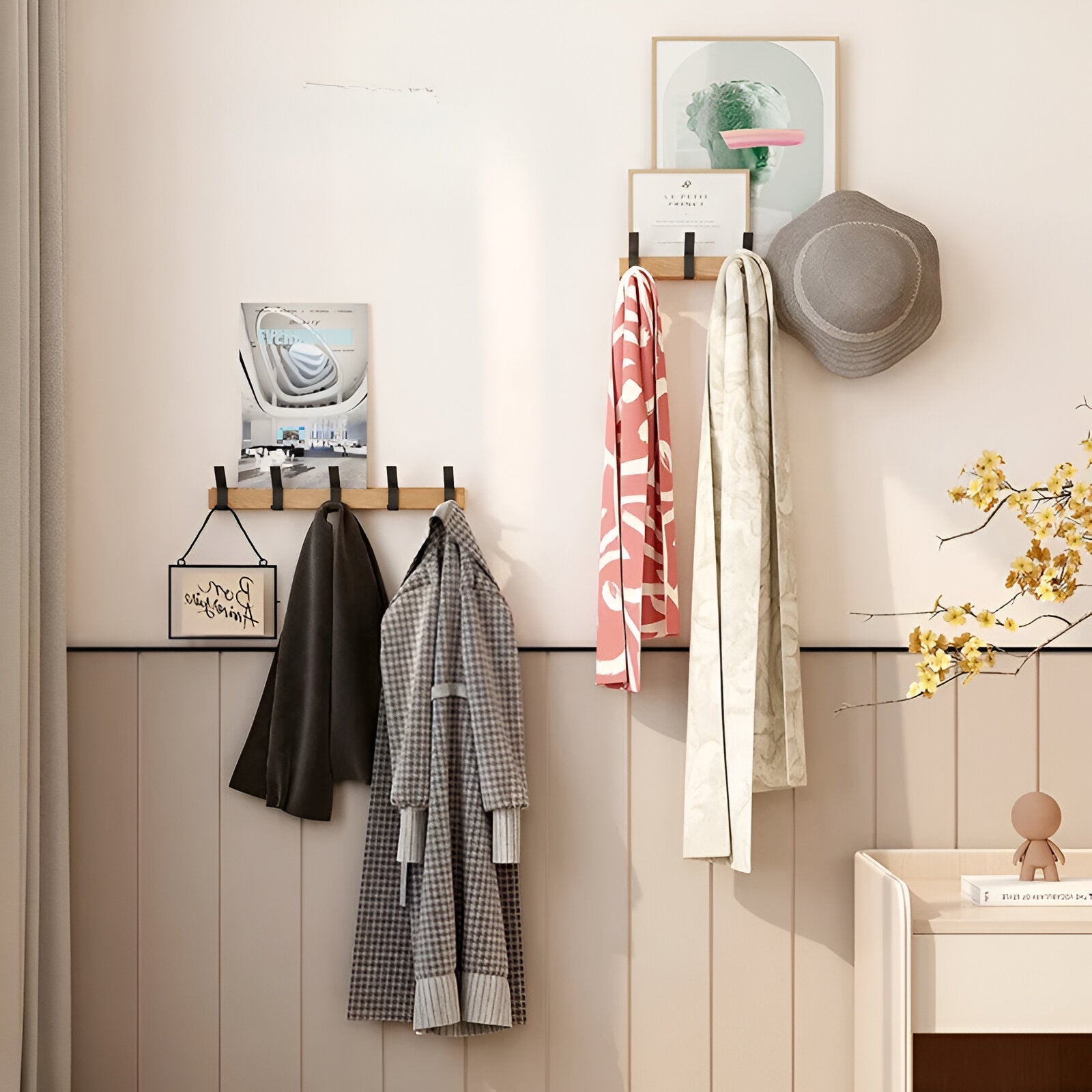 HookMov klädhängare - Multifunktionell vägghängare i trä med aluminiumkrokar