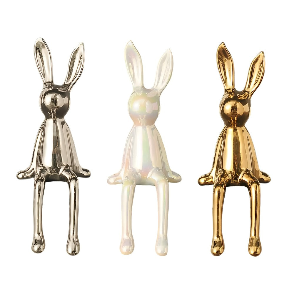 Den guldglänsande kaninfiguren är tillverkad av högkvalitativ keramik och har en blank glasyr som utstrålar elegans och charm.